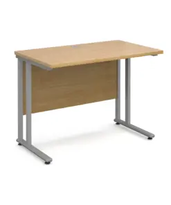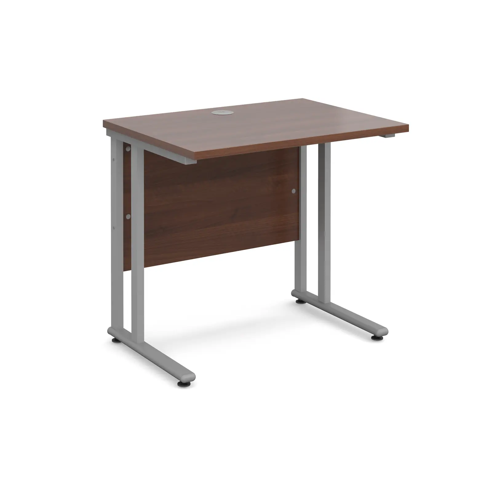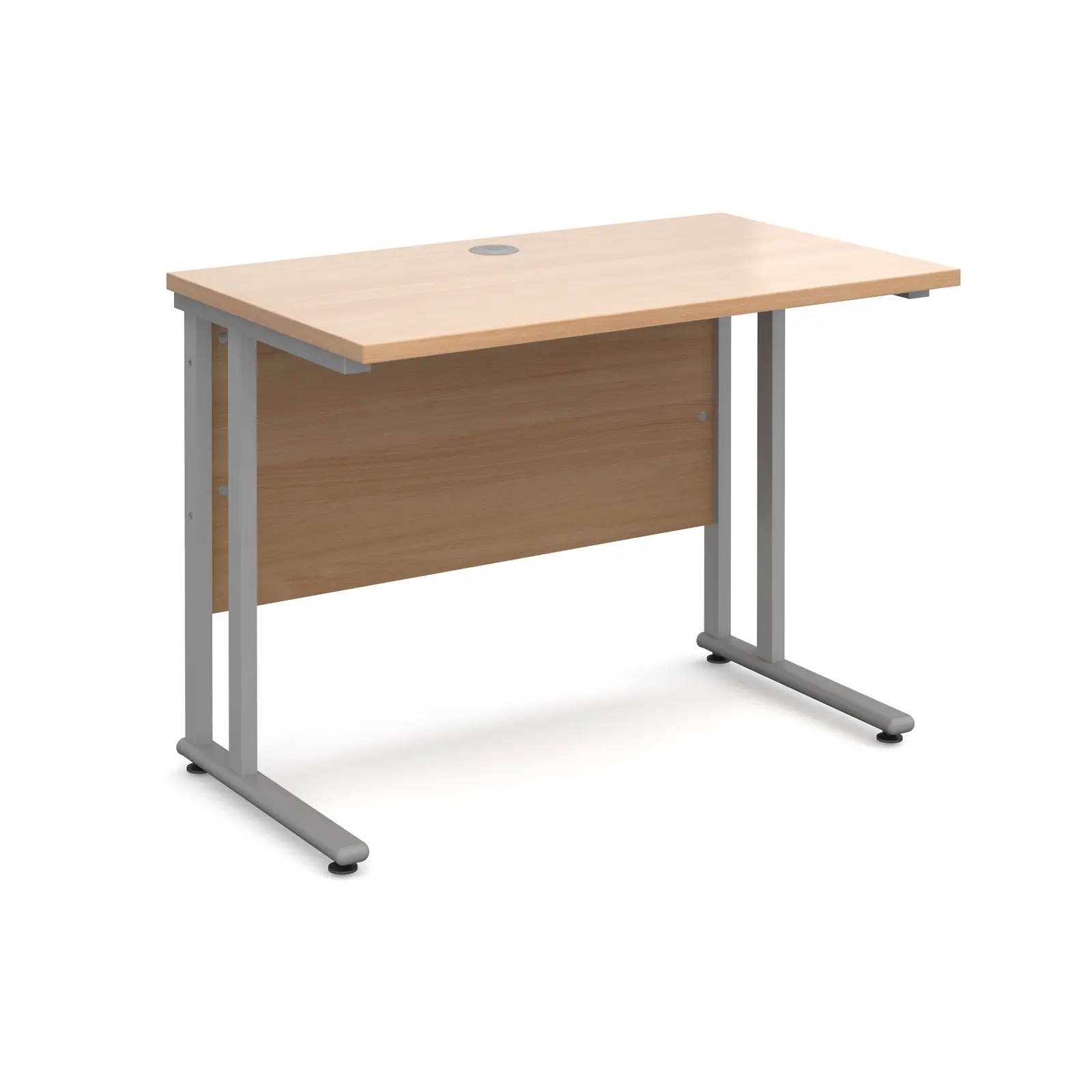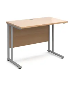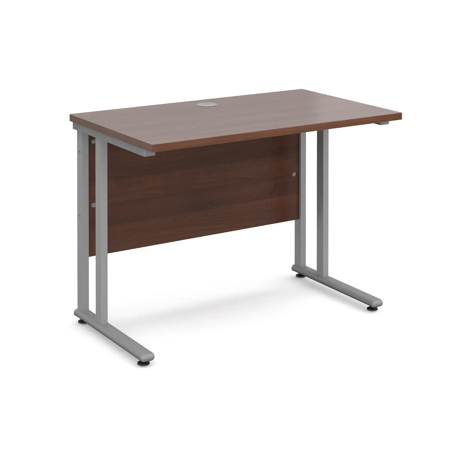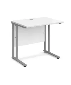 60cm Deep Straight Desks | Maestro 25 SL with a 25mm top. Silver cantilever frame. Deluxe double upright leg for strength. One cable access port, shallow desks 600mm deep