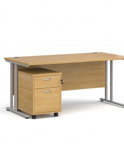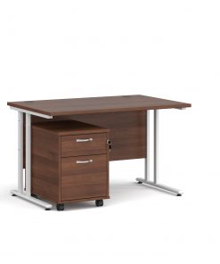 - Desktops available in beech, grey oak, oak, white and walnut with matching two drawer mobile pedestal