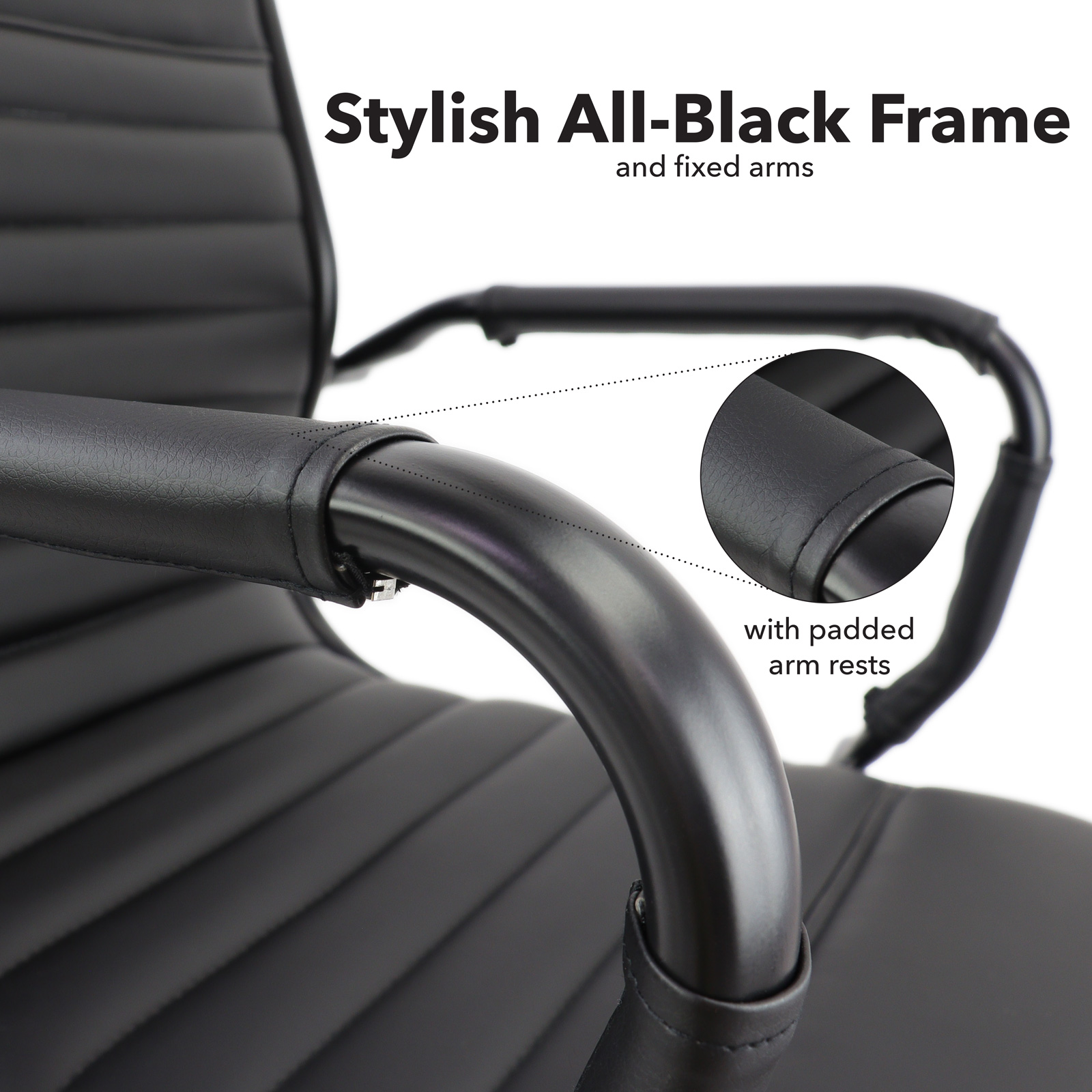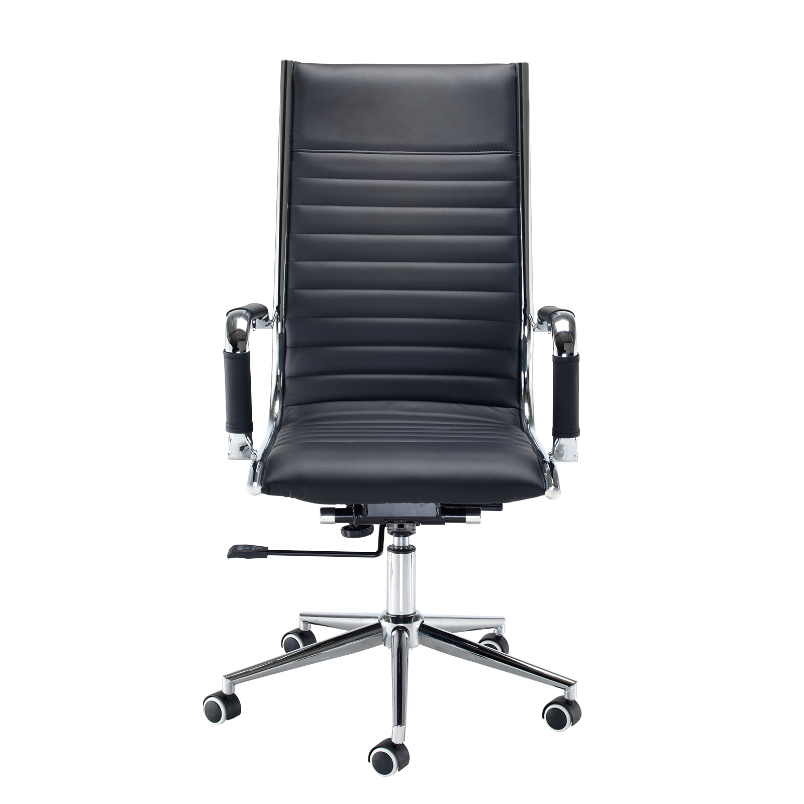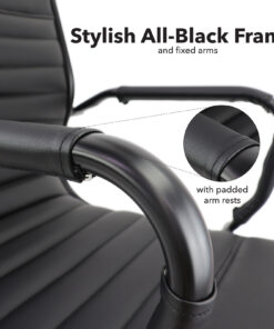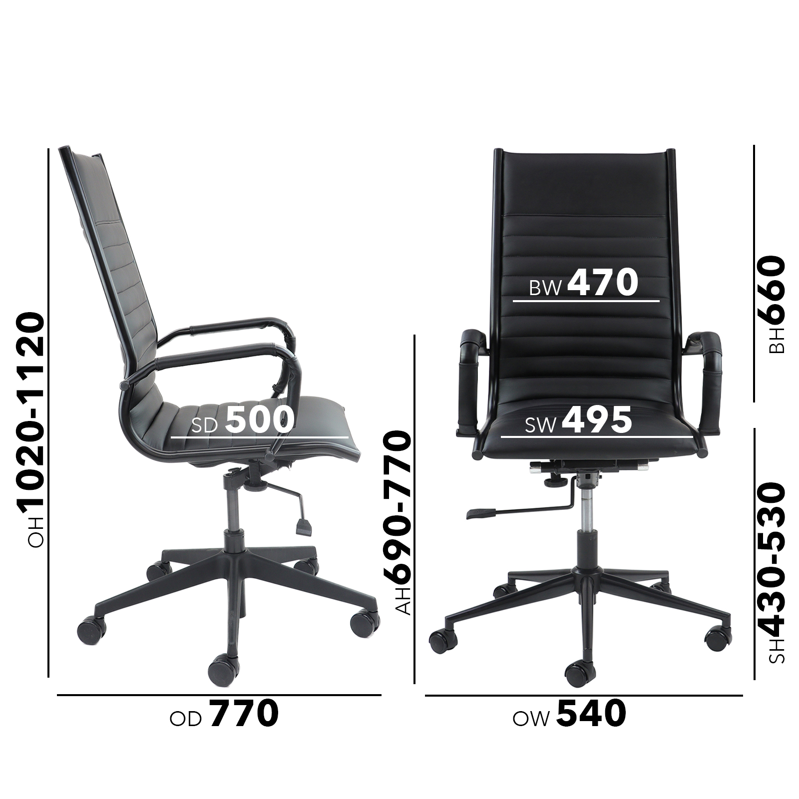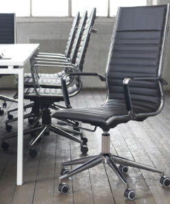 The Bari executive chair and matching visitors chair is perfect for adding a touch of style to your office or conference room. The classic black ribbed faux leather design is available with a high back or medium back and will add some much-needed comfort to employees and visitors, with chrome arms and a chrome base that will always looking sleek and stylish.