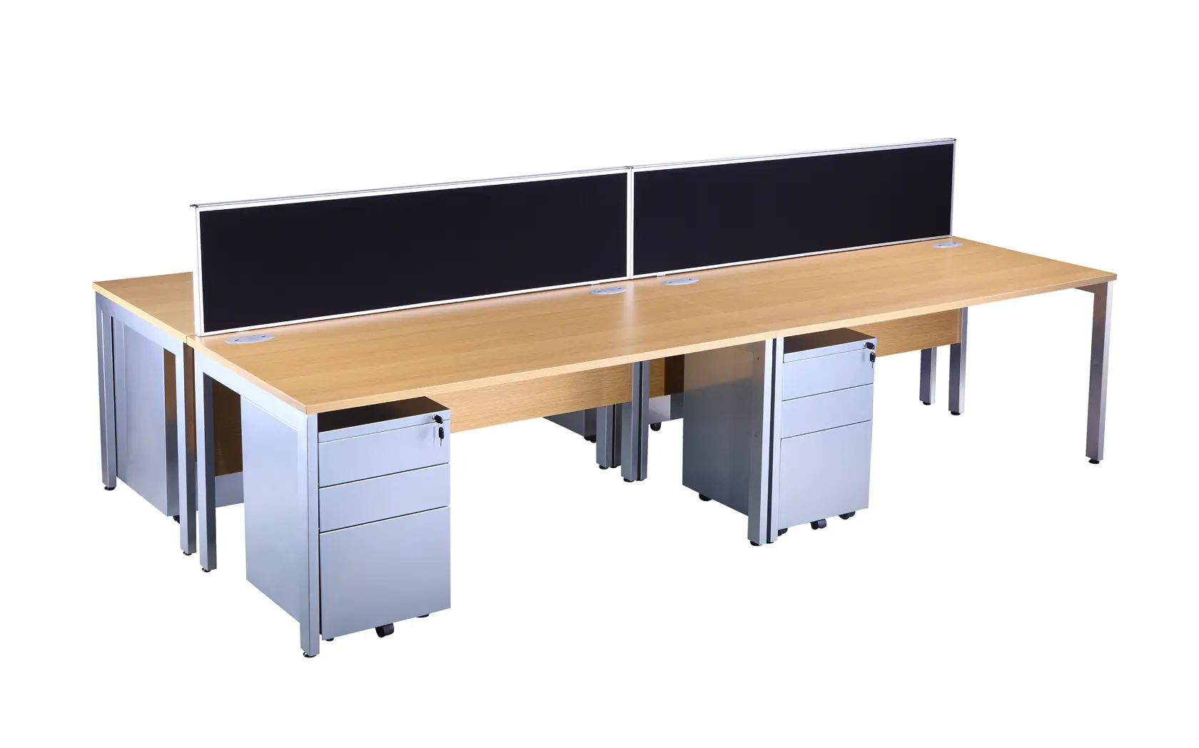 Our Bench Style Desking provides a clean and minimal look to any office, adaptable in Busy Work Environments.