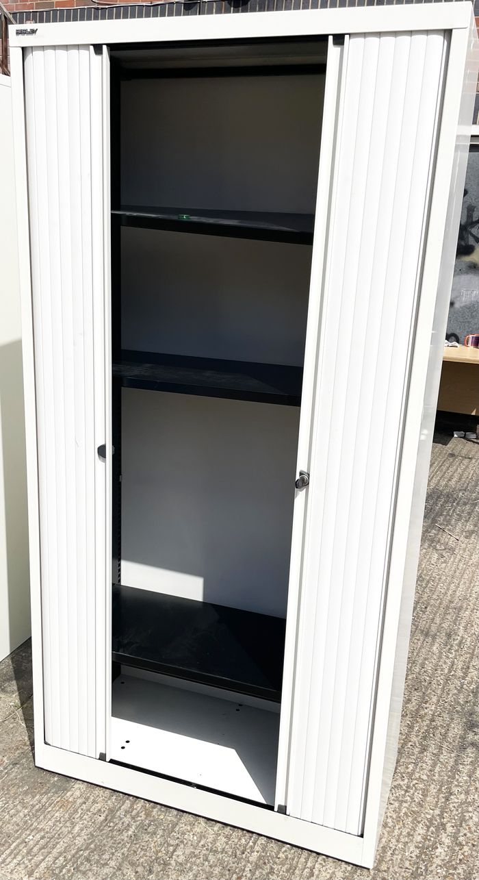 - Side-opening tambour cupboard manufactured by Bisley