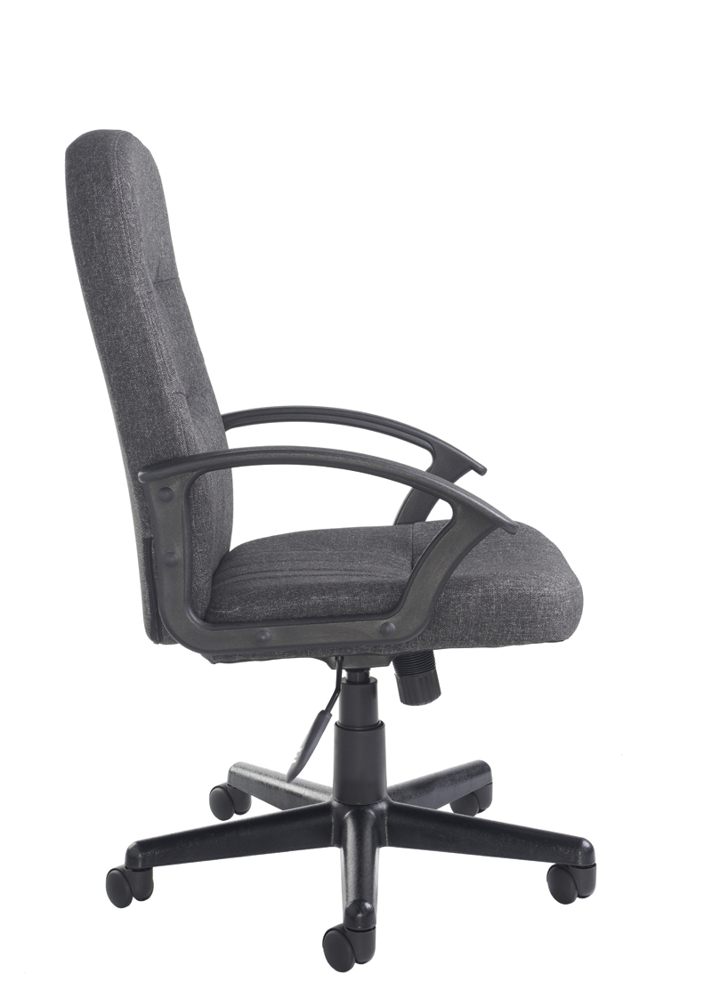 The Cavalier manager seating range is available as a soft, supple leather faced chair or as a fabric chair in blue or charcoal, both carefully stitched and tufted for plush comfort and a most elegant look. Designed to complement the managers chair, the black leather Cavalier visitors chair will also make a stunning addition to any conference room or waiting area.