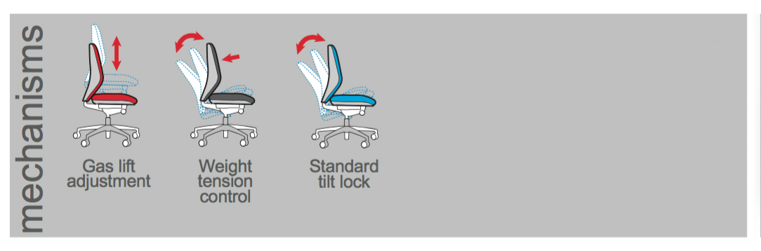 - Fixed black polyurethane armrests with durable black nylon 5-star base