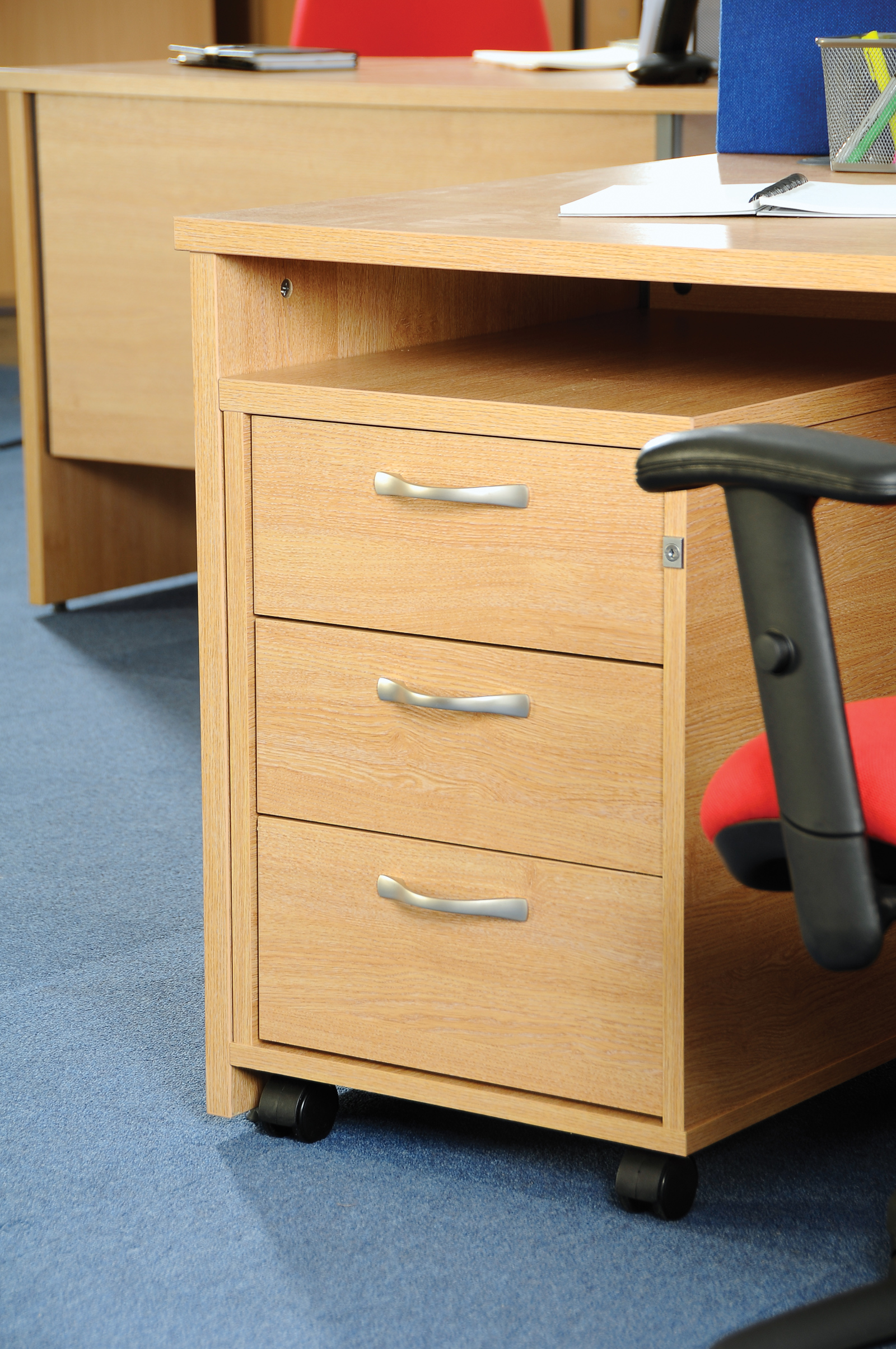 - 600mm deep, tall slimline three drawer mobile pedestal with castors