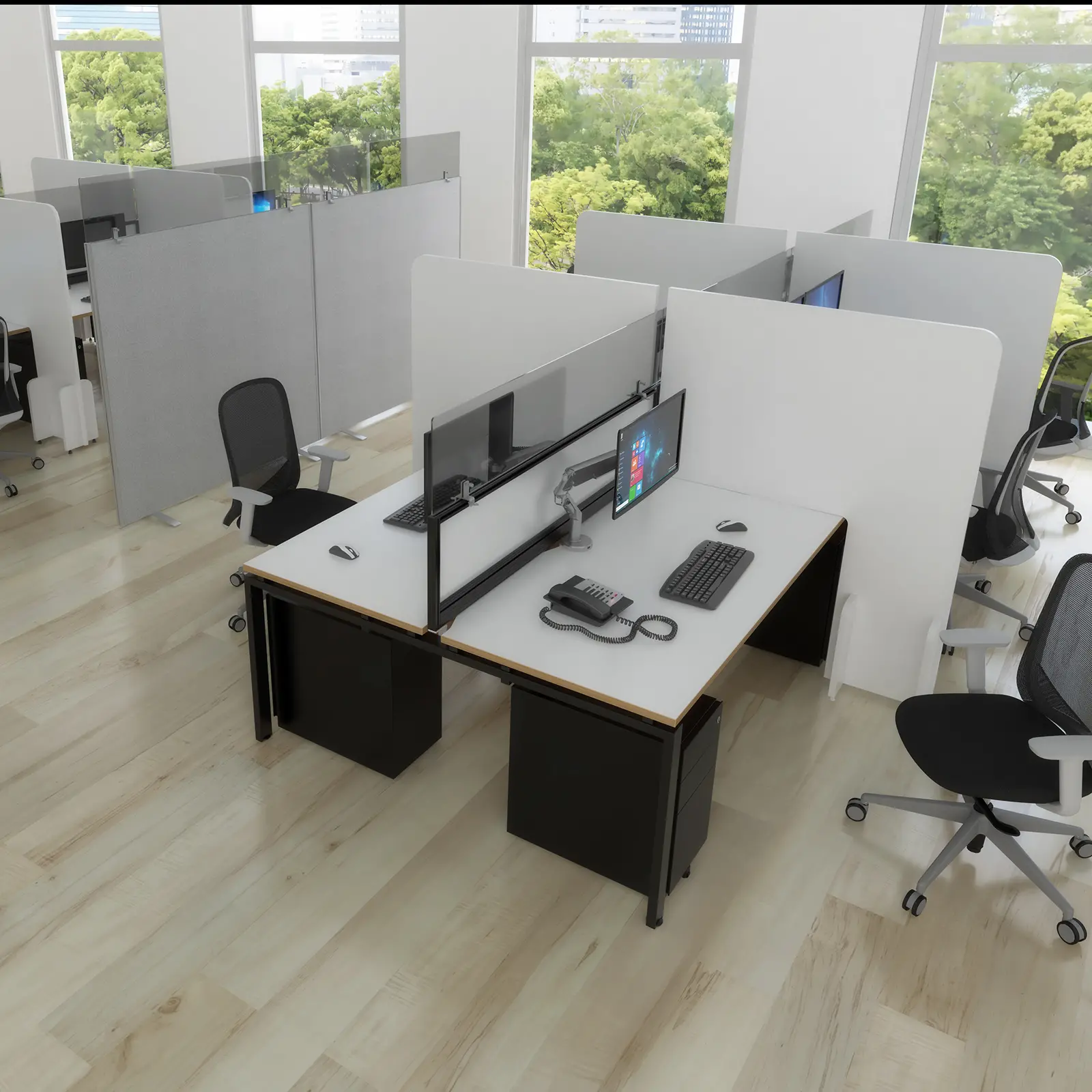 - Screens can utilise the desk as support or can be used with bar feet supplied as standard