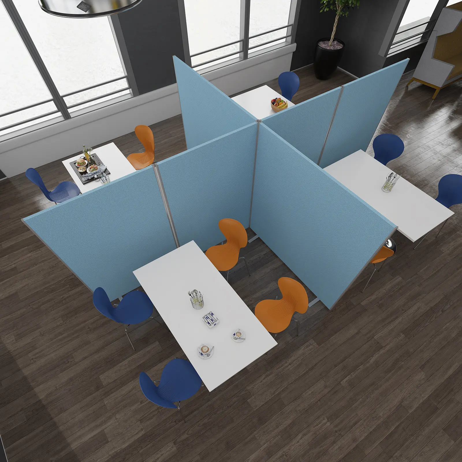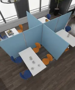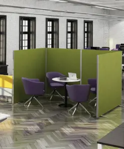 Free standing floor screens are available in three different sizes and are used to break up the appearance and divide the space without losing any of the benefits of the open plan layout. Fabric wrapped floor screens also provide the operators with an element of seclusion and privacy and can be joined together with the linking strips for connecting 2 screens or 4 screens together.