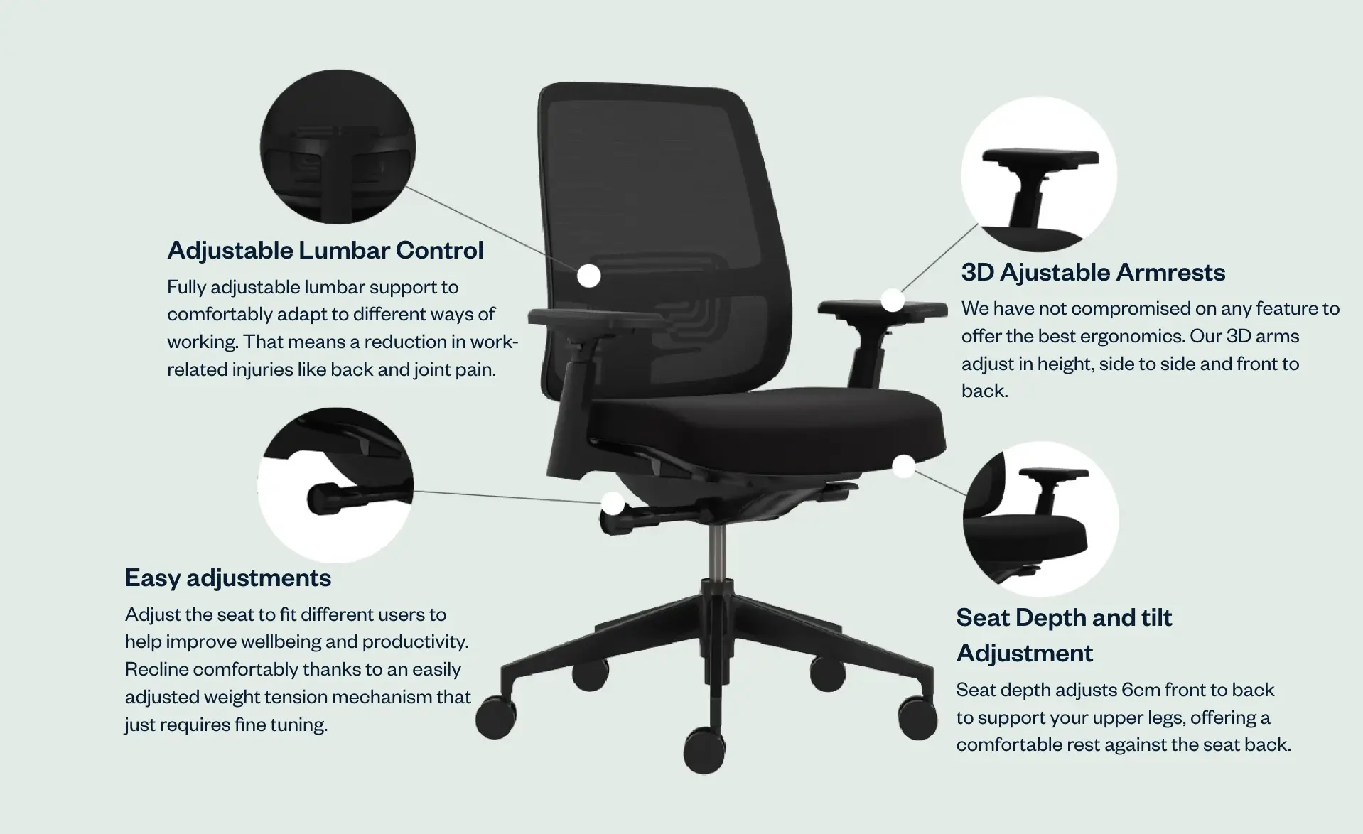 The unique design of the Lively office chair allows you to customise the angle of the backrest, seat height, and armrests to your body type and preferences. The chair’s sleek and modern style will compliment any office environment, and its long-lasting construction ensures durability. The Lively office chair is also simple to clean and maintain, making it an excellent choice for time-pressed workers. This office chair will undoubtedly be a comfortable and dependable addition to your workplace.