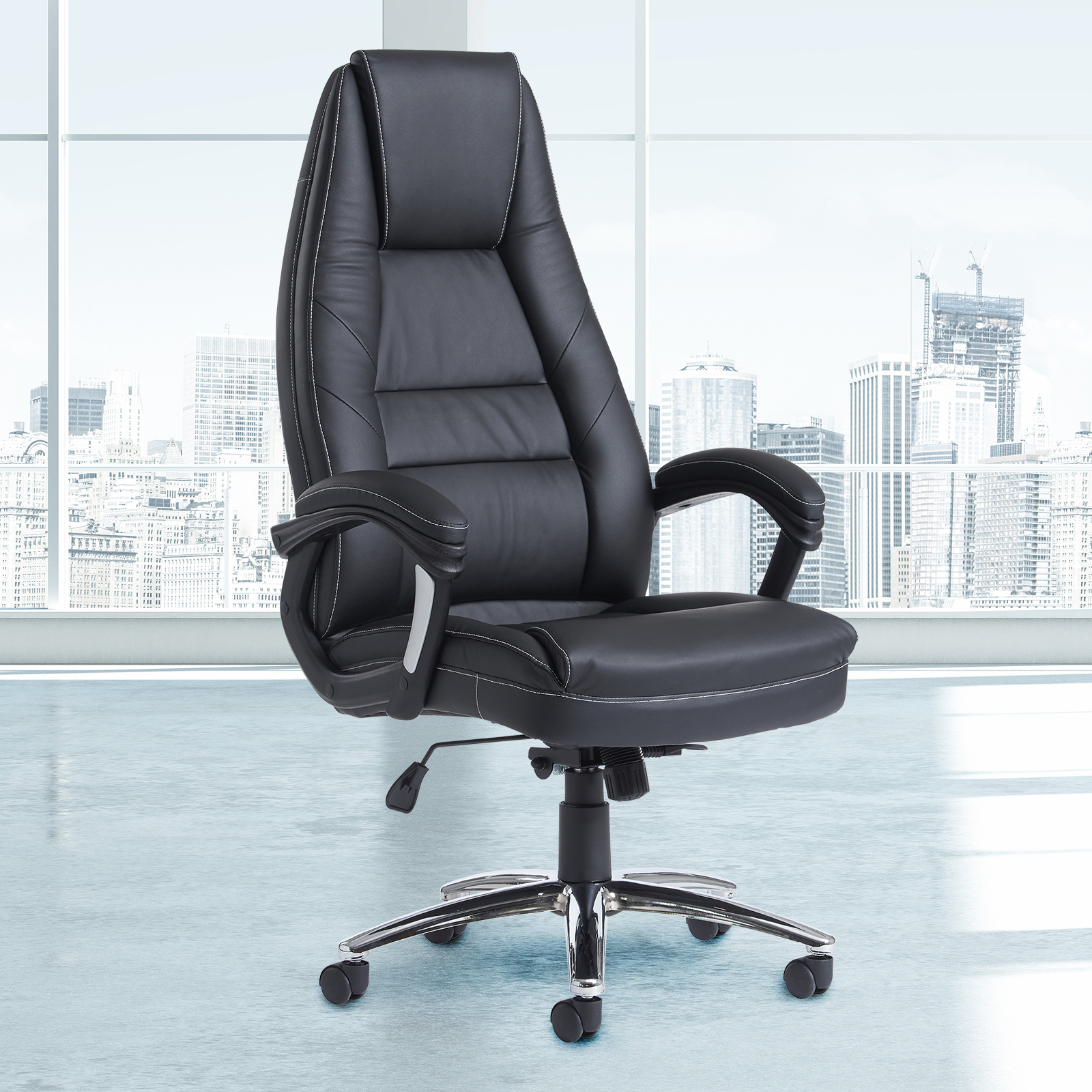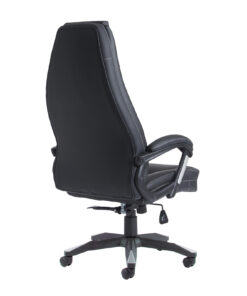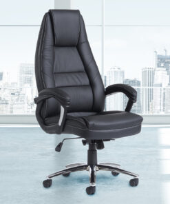 The Noble high-back, black faux leather chair family is designed for comfort with a look that would fit any office or conference room. The thick padding is covered in soft and supple faux leather with a white stitching detail that looks great and offers maximum comfort and mobility for the user, with the black padded fixed arms featuring chrome trim to match the black cantilever base.