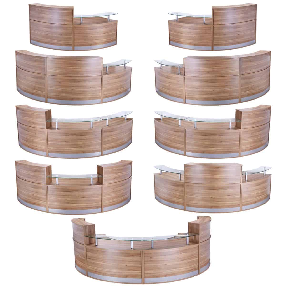 Two components with configuration options, these reception modular counters are perfect for all office areas, from the Executive level all the way to reception seating.