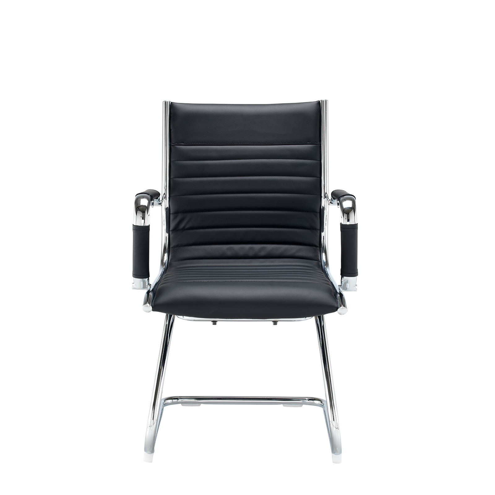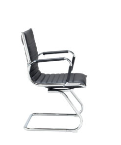 - The Bari executive chair and matching visitors chair is perfect for adding a touch of style to your office or conference room. The classic black ribbed faux leather design is available with a high back or medium back and will add some much-needed comfort to employees and visitors, with chrome arms and a chrome base that will always looking sleek and stylish.
