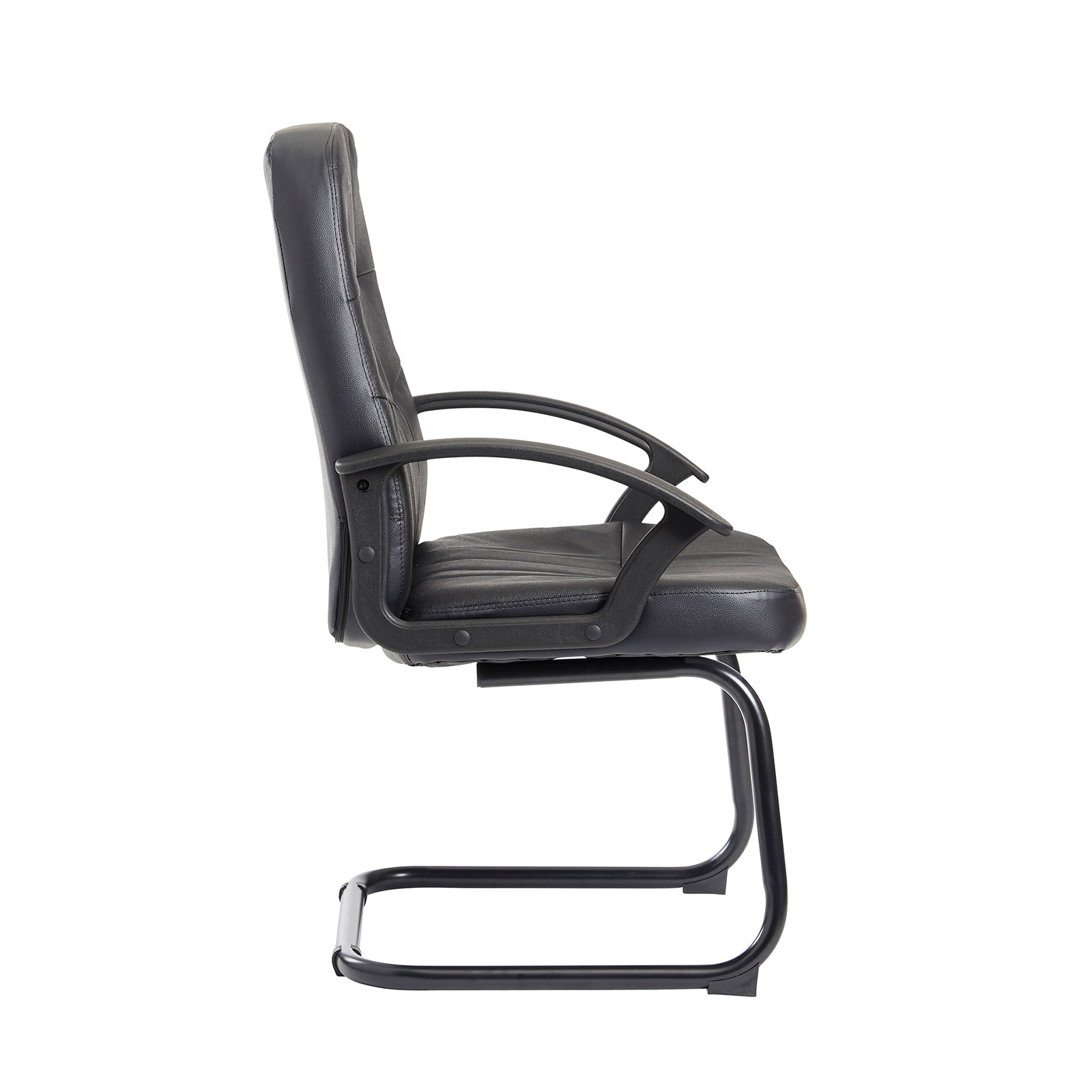 The Cavalier manager seating range is available as a soft, supple leather faced chair or as a fabric chair in blue or charcoal, both carefully stitched and tufted for plush comfort and a most elegant look. Designed to complement the managers chair, the black leather Cavalier visitors chair will also make a stunning addition to any conference room or waiting area.