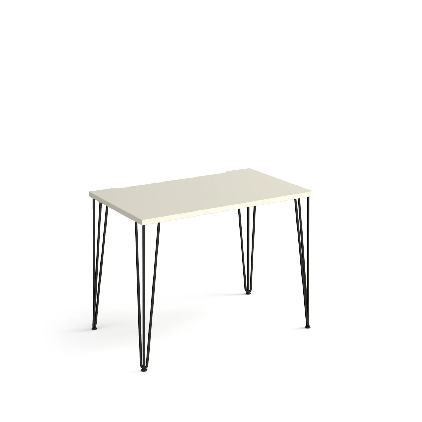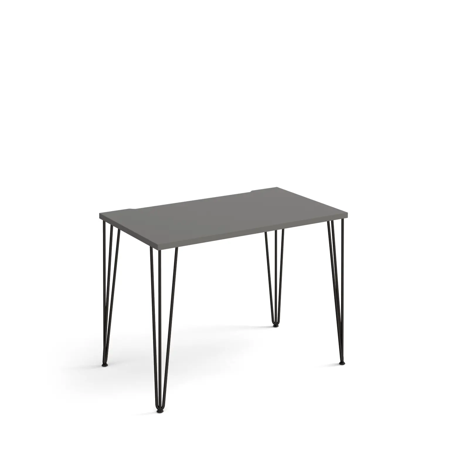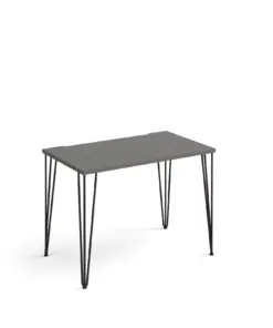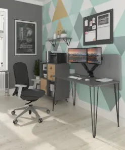 Give your workspace a mid-century modern upgrade with the Tikal workstation with black hairpin legs, which will add both stability and style to any home furniture setting. Available with triple slimline rods, the hairpin legs sit at a reclined angle in each corner of the desktop, complemented by matching hairpin feet for the wooden storage unit and chic shelf brackets to make up the complete home office setup.