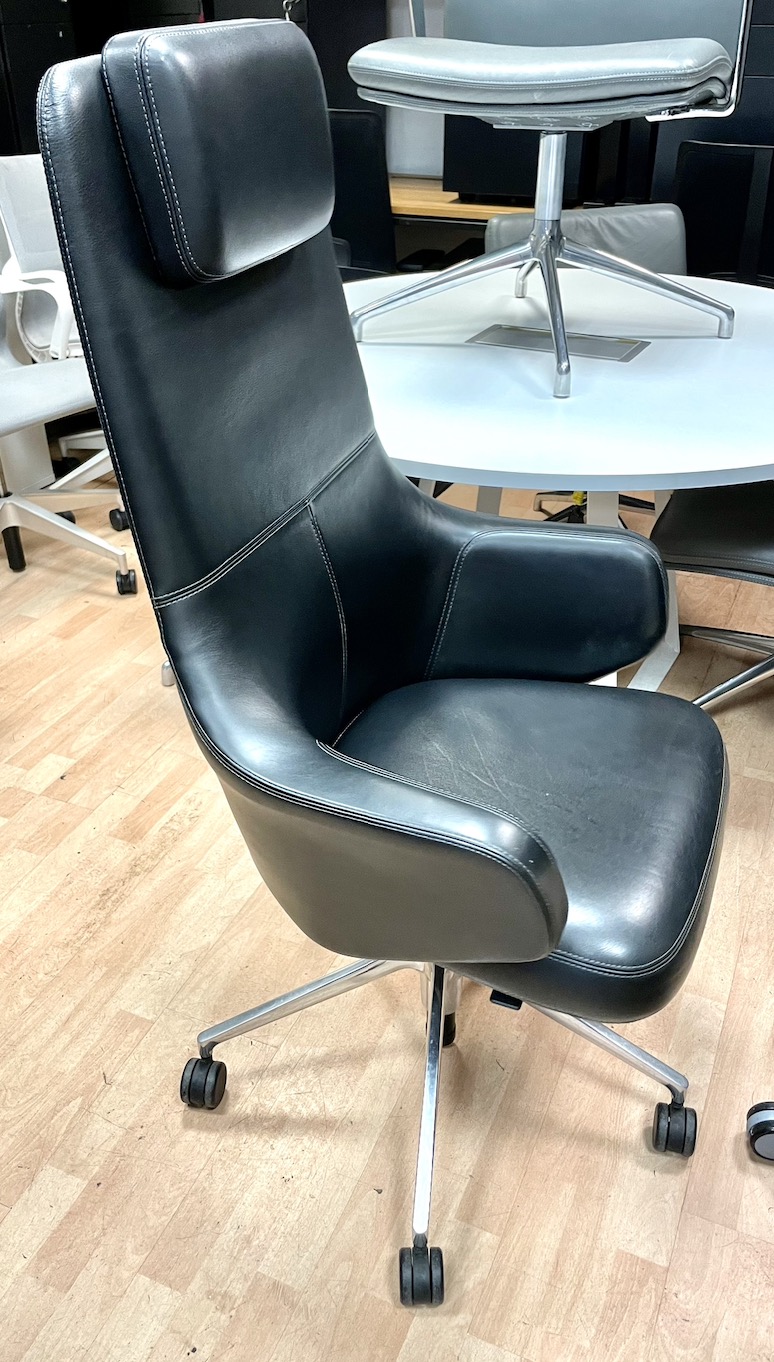The Vitra Grand Executive High Back chair combines the elegance of the Grand Repos lounge chair, which was designed by Antonio Citterio for the Vitra Home Collection, with the functionality of a modern boardroom chair.