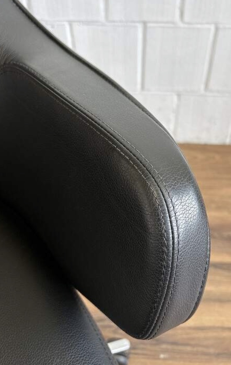 The look of the Grand Executive chair is complemented by a sleek aesthetic. Covered in high-quality leather, its softly padded upholstery provides supreme comfort and the decorative seams highlight the chair’s handcrafted details and delineate its volumetric structure. The Vitra FlowMotion mechanism can be adapted to the individual user to ensure synchronised comfort in every sitting position.