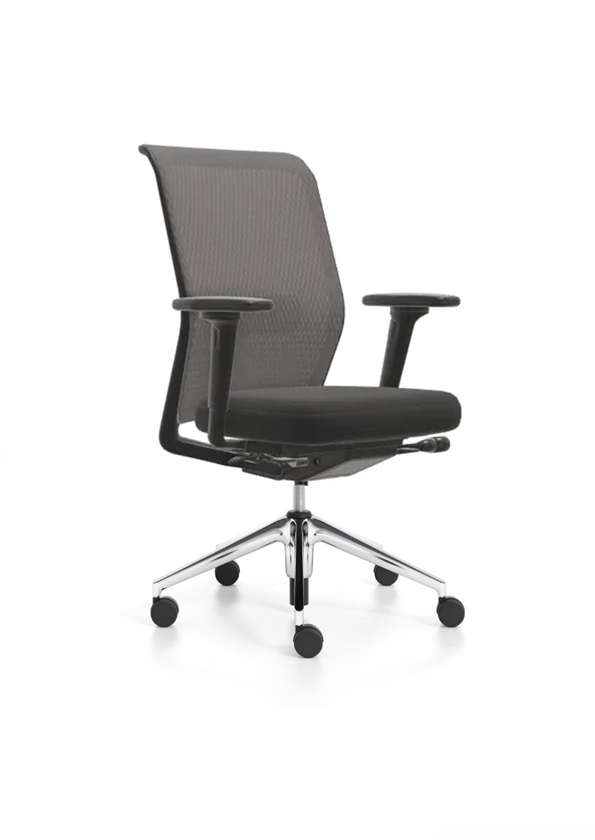 This office chair designed by Antonio Citterio, for VITRA combines comfort, technology and aesthetics. The simple design follows the user’s movements without the need for complicated mechanisms under the seat. The intelligent combination of materials gives stability in the areas exposed to greater stress while allowing flexibility in areas where adjustment to the body is required. The ID Mesh Chair is easy to maintain: backrest, seat, 3d armrests and 5-star base.