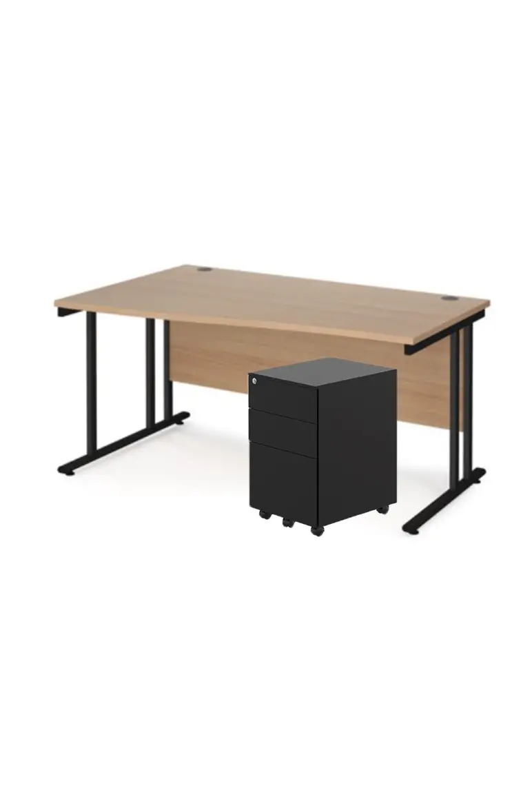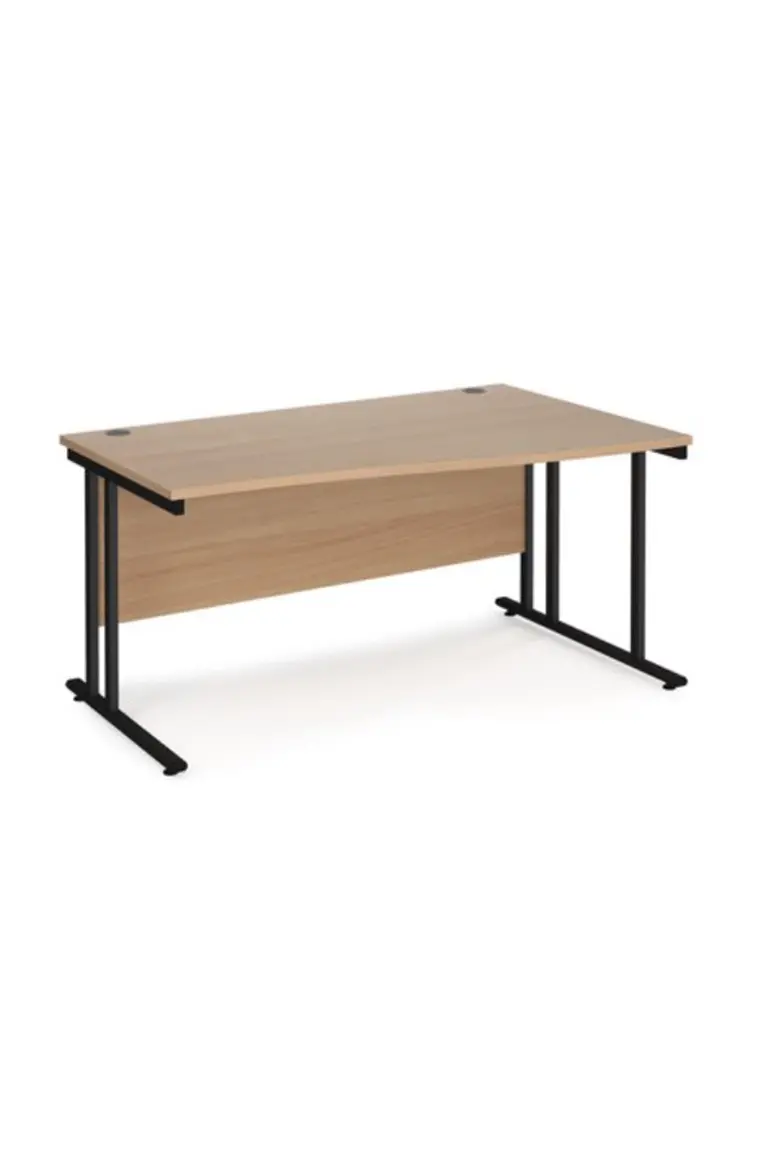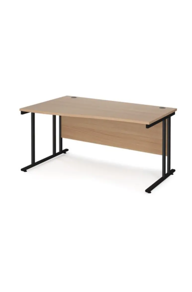 Our Beech Cantilever Desks features 25mm tops, high density heat resistant MFC panels, 2mm protective edging throughout, solid chipboard bases to fully extending pedestal, filer drawers and the black legs have floor levellers built in.