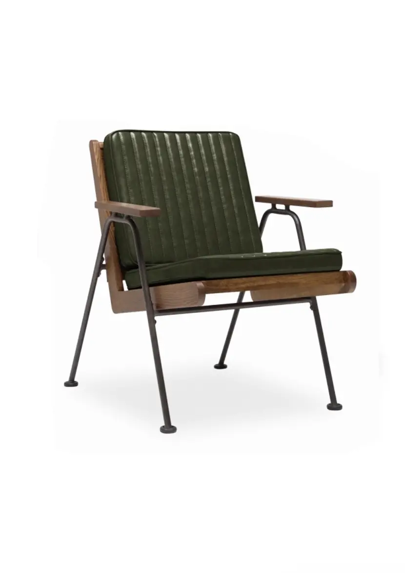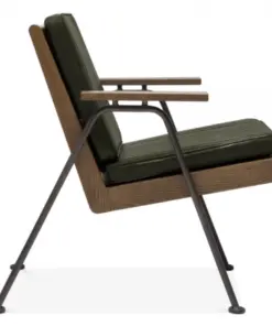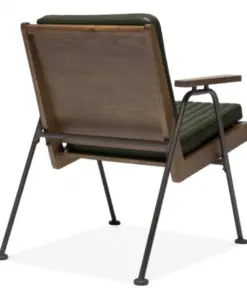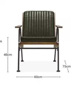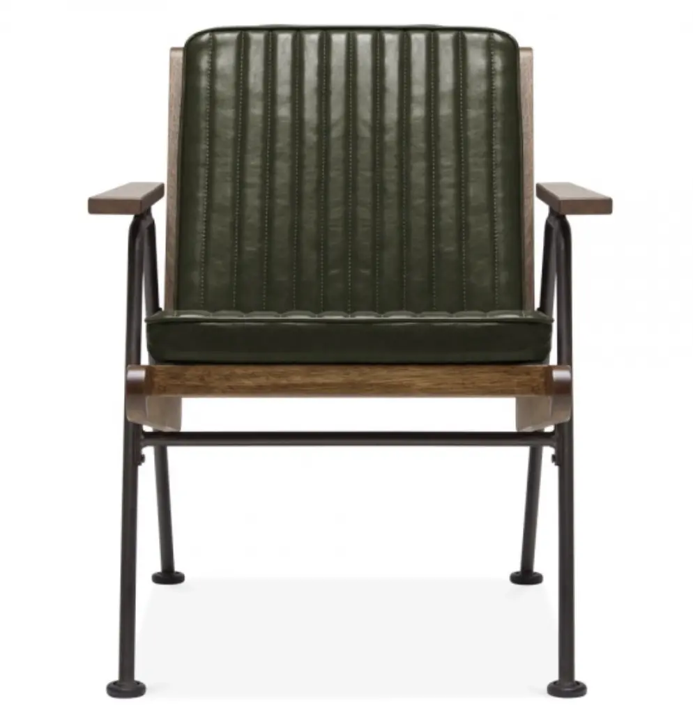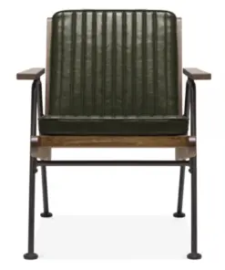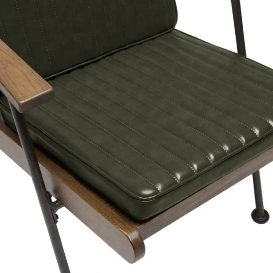 Introducing the industrial Wickham accent chair in green faux leather, wood and metal – all ready to bring a designer look to your living room furniture, office, meeting area and more.